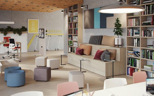 No solo existen paneles si no múltiples elementos como los Puffs ayudan a reducir los decibelios del ambiente.