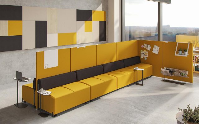 Gracias a su tejido y espumado interior de alta absorción acústica mejoran las condiciones de trabajo, especialmente en espacios diáfanos.