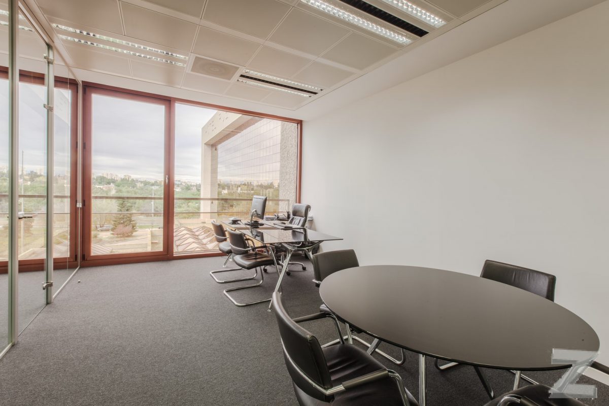 La arquitectura de la planta consta de dos grandes bloques rectangulares en los que se distribuyen islas y praderas de mesas en la zona interna y despachos y salas en el perímetro. Ambos bloques se unen en la zona central de la oficina donde se encuentran los accesos y usos comunes como comedor, vending, aseos, reprografía, etc.